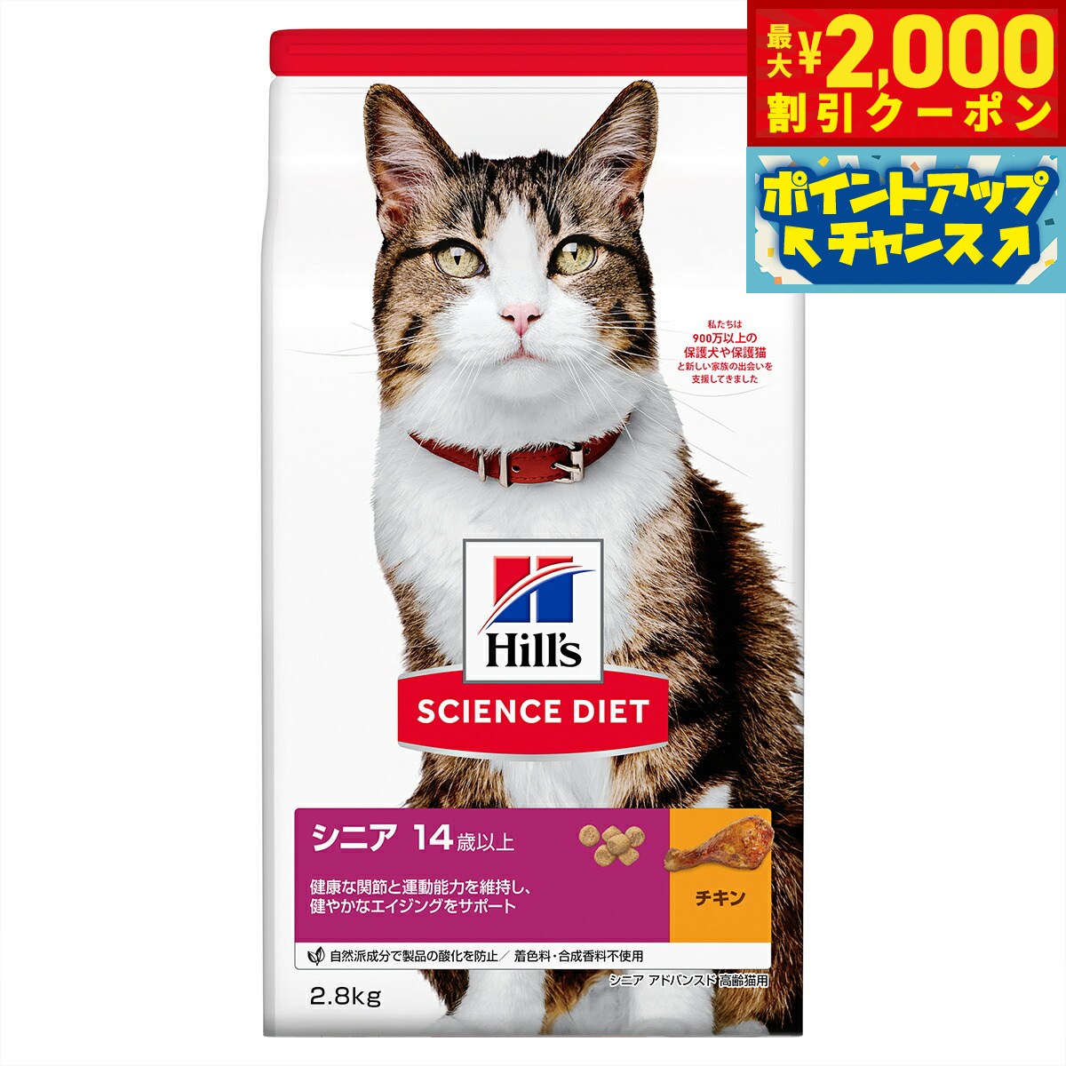 【最大2000円OFFクーポン!&店内ポイント最大52倍!本日限定!】サイエンス ダイエット シニアアドバンスド チキン 高齢猫用 14歳以上 2.8kg ヒルズ キャットフード ドライフード 総合栄養食 着色料 香料不使用