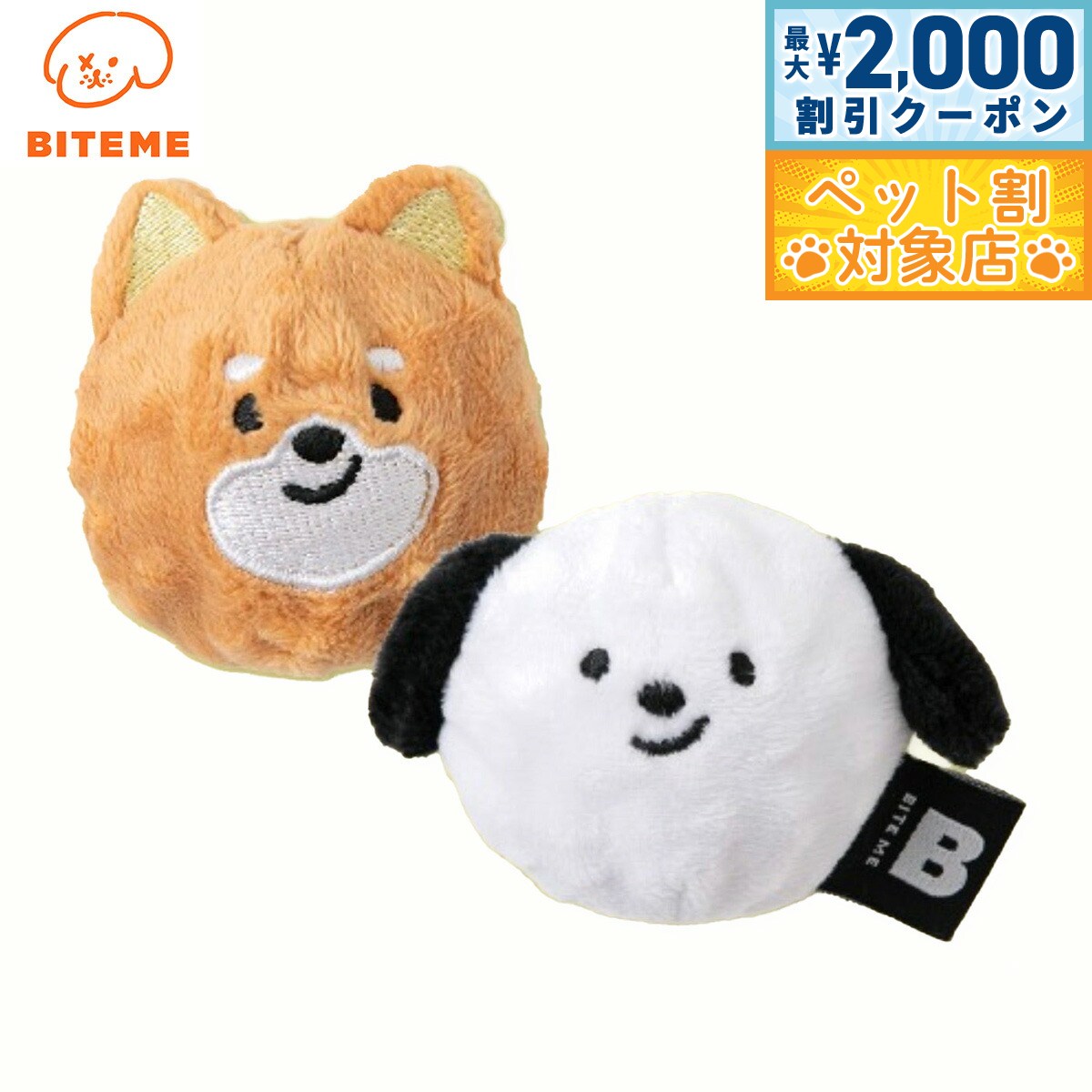 【最大2000円OFFクーポン!&店内ポイント最大60倍!本日限定!】バイトミー BITE ME 犬のボールおもちゃ 2個入(白いわんちゃん、茶色のわんちゃん:各1個) 犬のおもちゃ ドッグトイ