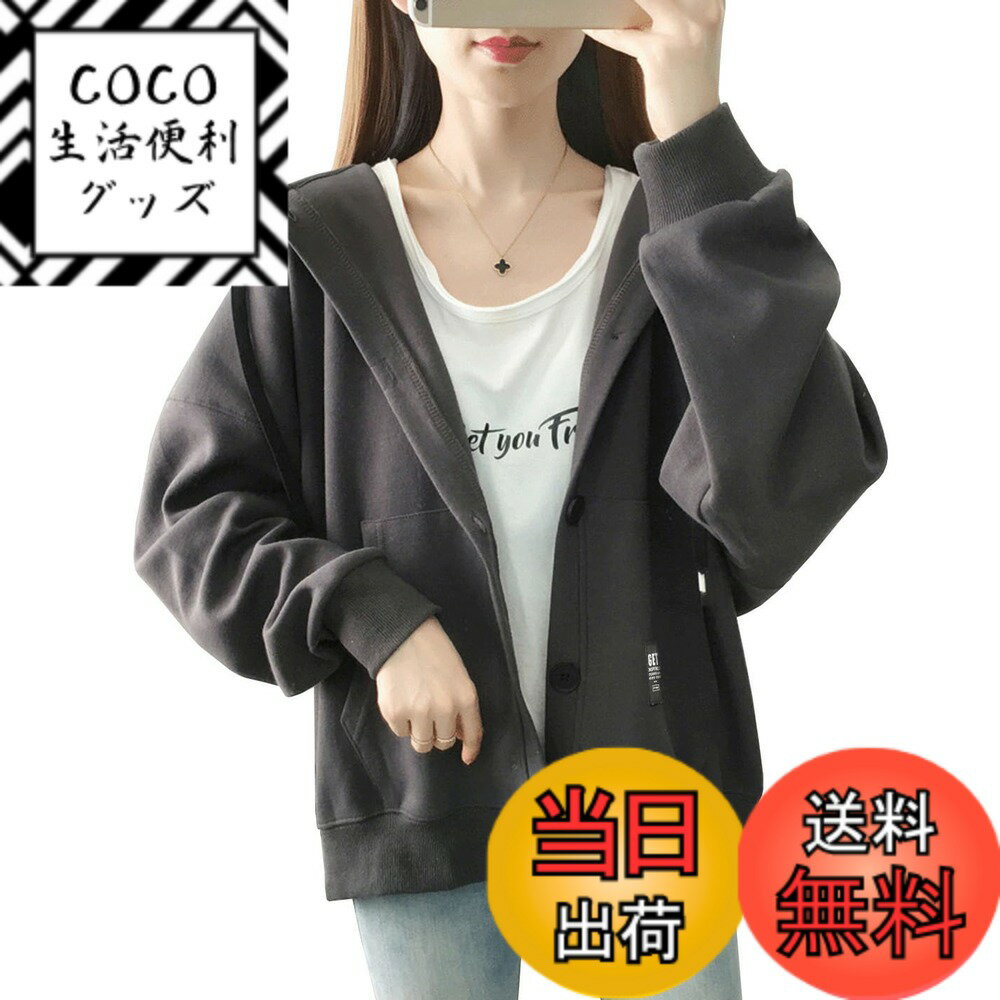 【送料無料】[EASTEMPO] パーカー レディース 秋 長袖 ゆったり おしゃれ 無地 カジュアル 可愛い 大きいサイズ 色:ダークグレー、サイズ:L