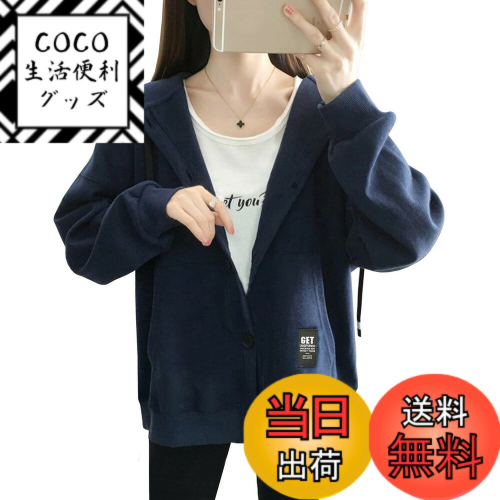 【送料無料】[EASTEMPO] パーカー レディース 秋 長袖 ゆったり おしゃれ 無地 カジュアル 可愛い 大きいサイズ 色:ネイビー、サイズ:M
