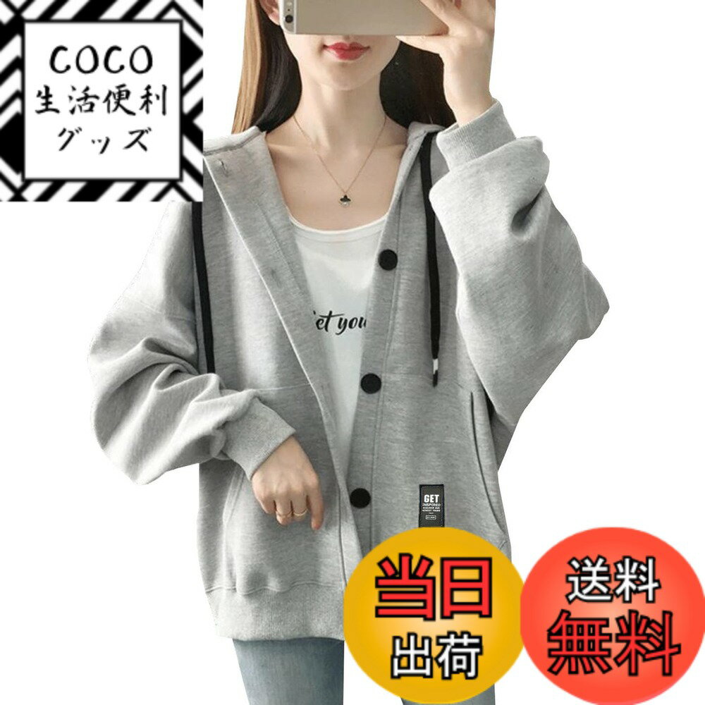 【送料無料】[EASTEMPO] パーカー レディース 秋 長袖 ゆったり おしゃれ 無地 カジュアル 可愛い 大きいサイズ 色:グレー、サイズ:2XL