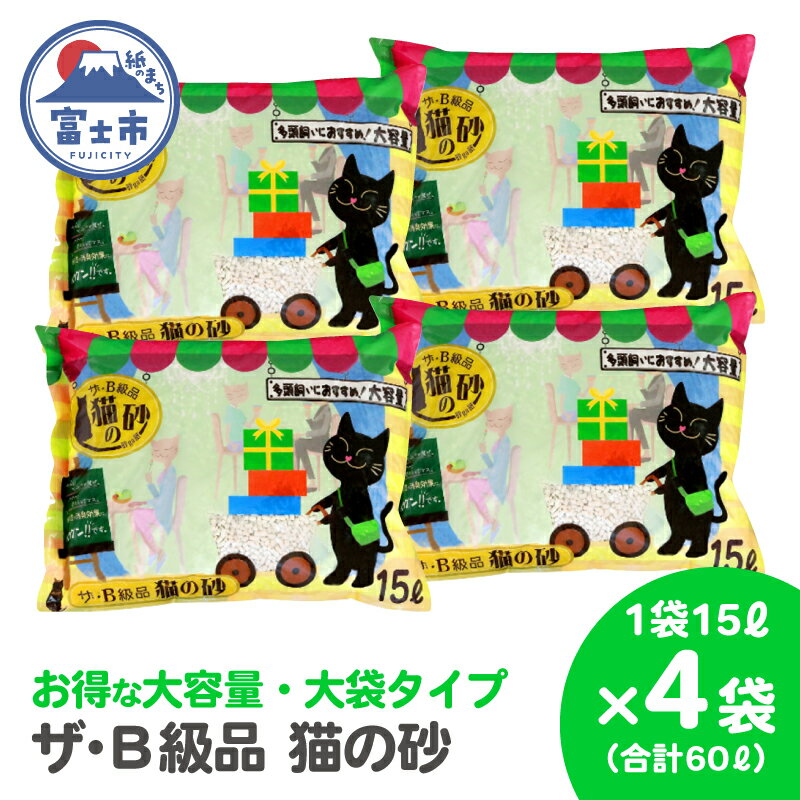 【ふるさと納税】 紙の猫砂 ザ・B級品猫の砂 15L×4袋 紙砂 しっかり固まる 燃えるゴミ 水洗トイレ使用不可 消臭 ニャン 猫 ネコ ねこ まとめ買い ペット用 消耗 衛生 防災 備蓄 日本製 国産 SDGs サノテック 静岡 富士市 [sf024-017]