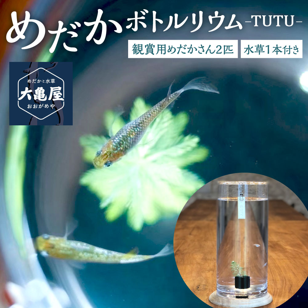 【ふるさと納税】めだか ボトルリウム -TUTU- めだかさん 2匹 おまかせ ガラス 容器 水草 1本 ウォーターコイン または ミリオフィラム メダカ 観賞魚 改良めだかさん 小型 円柱 水槽 ミックス 魚 ペット 鑑賞 若魚 国産 福岡県