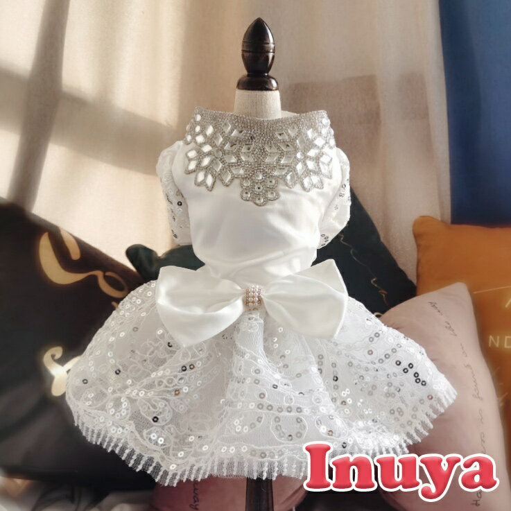 犬服 【ビジュー ウェディングドレス】 S~XL ゴージャス リボン キラキラ ストーン スパンコール チュチュ レース 小型犬 グッズ チワワ ヨーキー トイプードル マルチーズ ダックスフンド シュナウザーなど 可愛い