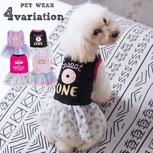送料無料 ペットウェア ワンピース 犬 猫 ドッグ キャット 犬服 小型犬 中型犬 ペット用品 ペットグッズ 切り替えワンピ 袖なし チュールスカート チュチュ ドーナツ 王冠 ティアラ 文字入り ギャザー フリル 星 スター プルオーバー シンプル カジュアル ふんわり かわいい