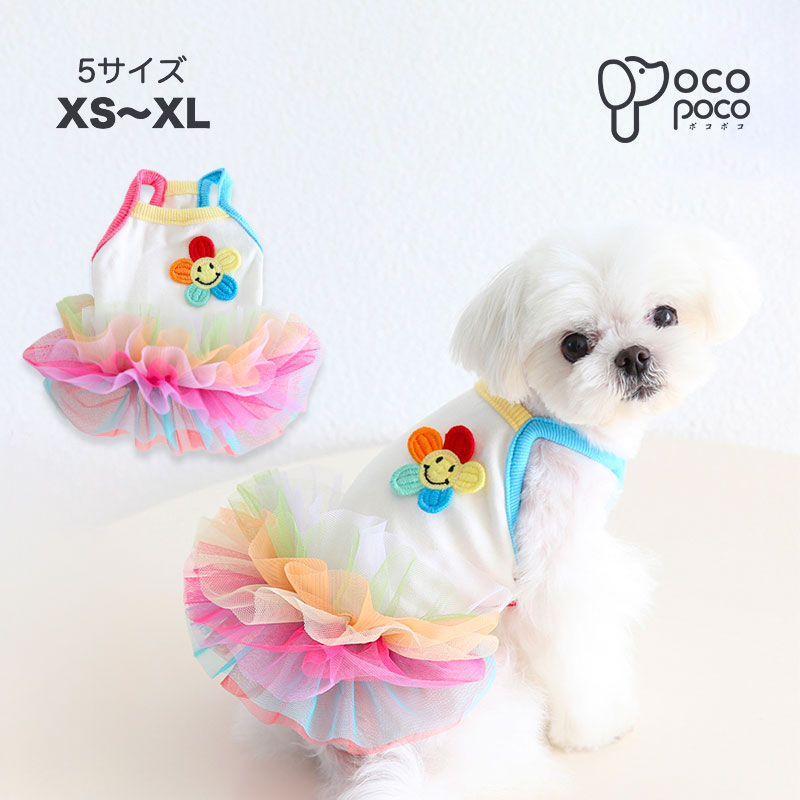 【全商品ポイント5倍】NEW! 超可愛い 犬の服 ワンピース キャミワンピース フリル チュチュ 涼しい おしゃれ おもしろ かわいい 可愛い 伸縮性あり 着せやすい 猫服 抜け毛防止 お散歩ウェア インスタ映え カラフル 色とりどり ひまわり XS〜XLサイズ対応