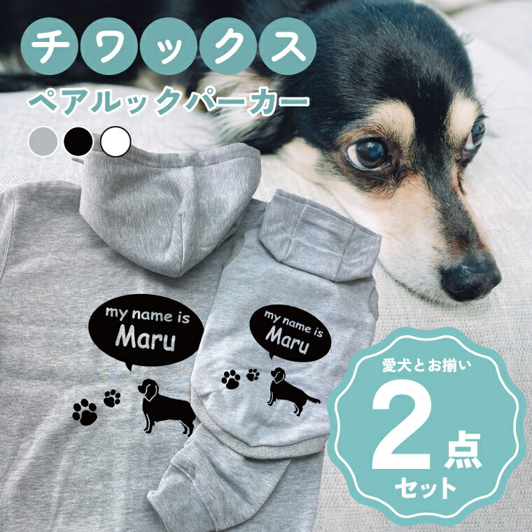 チワックス チワワ ダックス ミックス犬 ハーフ犬 ペット 犬グッズ 犬雑貨 ドッグ いぬ 小型犬 DOG 名入れ 名前入り ネーム入り name dog 犬雑貨 犬グッズ 犬服 ドッグウェア 犬の服 犬 ペット 服 ウェア 洋服 S M L XL 2L 3L 4L 日本製 春 夏 秋 冬 オリジナルドッグウェア 犬とお揃い ペアルック ペア おそろい お揃い 誕生日 オリジナル オーダーメイド おしゃれ シンプル バースデー プレゼント ギフト 御祝い お祝い 贈り物 御祝 お祝 記念日 記念品 バレンタインデー ホワイトデー 成人式 七五三 母の日 父の日 敬老の日 クリスマス 入学 卒業 入園 卒園 お誕生日 内祝い お土産 手土産 御礼 結婚祝い 出産祝い 年賀 転職【 重 要 】裏起毛ジップパーカースペック変更 現行モデルの在庫終了次第、順次新仕様のジップパーカーへ切り替えいたします。 犬の服の実寸サイズは型紙用紙にてご確認いただけます。▼詳しくはこちらからご確認ください型紙用紙PDFデータ 【 犬の服 】商品詳細 ウェアカラー グレーブラックホワイト サイズ Mサイズ(首周り25cm×胴周り35cm×着丈26cm×前丈17cm)Lサイズ(首周り30cm×胴周り40cm×着丈29cm×前丈20cm)XLサイズ(首周り34cm×胴周り45cm×着丈33cm×前丈23cm)2Lサイズ(首周り38cm×胴周り50cm×着丈37cm×前丈26.5cm)3Lサイズ(首周り42cm×胴周り57.5cm×着丈41cm×前丈30cm)4Lサイズ(首周り46cm×胴周り65cm×着丈45cm×前丈33cm) 材質 綿70%ポリエステル30% ※日本製 【注意事項】 当店の犬服は市販品のサイズとは異なります。・サイズが生産ロットにより1〜2cm程度の誤差があるものがございます、ご了承ください。・胴回りは2〜4cm足したサイズが最適サイズとなります。・首回りは商品の目安とし購入時は胴回りをご参考ください。・犬の服はお洗濯はなるべく手洗いで陰干しすることをおすすめします。ご使用のディスプレイや閲覧環境などによって明るさや色彩などが現物と異なってみえる場合がございます、予めご了承ください。 【 飼い主の服 】 ウェアカラー グレーブラックホワイト サイズ 【旧ジップパーカー】 Mサイズ / Lサイズ / LLサイズ 【新ジップパーカー】 Mサイズ / Lサイズ / XLサイズ 素材 【旧ジップパーカー】 ポリエステル85%/綿15%※リブ:ポリエステル97% / ポリウレタン3% 【新ジップパーカー】 裏起毛 / 綿88% ポリエステル12% (表側:綿100%)※ダブルジップ仕様 生地の厚み 【旧ジップパーカー】 10.0オンス 【新ジップパーカー】 12.0オンス 【注意事項】 ご使用のディスプレイや閲覧環境などによって明るさや色彩などが現物と異なってみえる場合がございます、予めご了承ください。