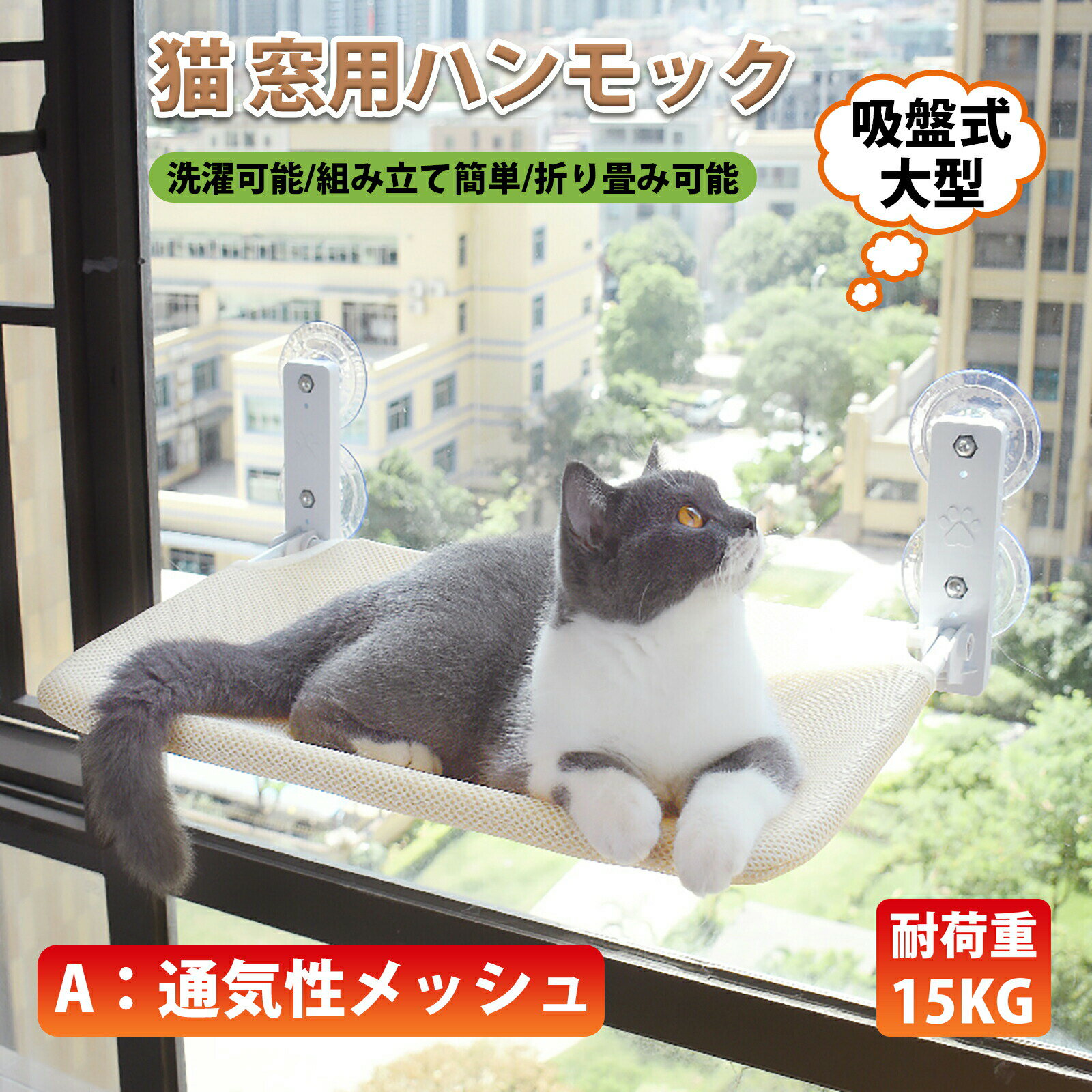 猫 ハンモック 窓 猫 ベッド 吸盤式 強力な吸盤 窓掛け 窓際マット 折りたたみ 窓ハンモック 取り付け簡単 四季兼用 耐荷重15kg 日光浴 ネコ用 猫 キャット ねこ 室内用 睡眠 運動 休憩 吸