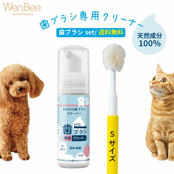 【ペット用】 歯ブラシ&クリーナーセット 犬 猫 ふわふわシルク歯ブラシ+ふわふわ歯ブラシクリーナー 50ml 歯ブラシ 歯磨き 苦手対策 口内ケア 泡切れ◎ 天然成分 Sサイズ ペット用歯ブラシ 【送料無料】