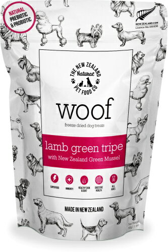 ≪商品詳細≫ WOOFラムグリーントライプwith緑イ貝は、健康な筋肉の発育と皮膚被毛の健康を保つトリーツです。 ラムグリーントライプは、消化の良いタンパク質や天然の消化酵素、プロバイオティクス、プレバイオティクスを多く含み、腸の健康を保つのに役立ちます。 自己免疫力を高めるため、食物アレルギーなどを持つ犬に特におすすめします。 緑イ貝は、関節や筋組織などの健康を保つグルコサミン、コンドロイチン、コラーゲンなどを多く含みます。 おやつとして、トッピングとしてお使いいただけます。 天然の消化酵素や乳酸菌を多く含むラムグリーントライプとオメガ3脂肪酸やコラーゲンを多く含む緑イ貝を安心のフリーズドライで調理しました。 ■内容量:40g ■素材:ラムグリーントライプ、緑イ貝 ■成分:たん白質52%以上、脂質34%以上、粗繊維1%以下、水分3%以下 ■エネルギー:531.3kcal/100g ■給与方法: 体重2.5kgにつき1日2粒を目安に与えてください。 指でくずして、フードのトッピングとしても使用できます。 常に新鮮な水を飲めるようにしておいてください。 ■対象:全犬種(オールステージ) ■原産国:ニュージーランド ■注意事項:お子様の手の届かない、冷暗所で保管してください。 直接ペットフード、ペットトリーツに触れた手は、充分に洗ってください。 [ブランド別][F][Furry Friends][JAN:9421904644502]