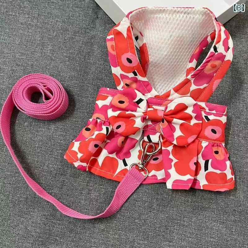 ハーネス 犬用 リード ペット チェストハーネス 牽引 ロープ ベスト ドレス テディ ビション ポメラニアン 小型 犬 猫 春夏 アウトドア ウェア
