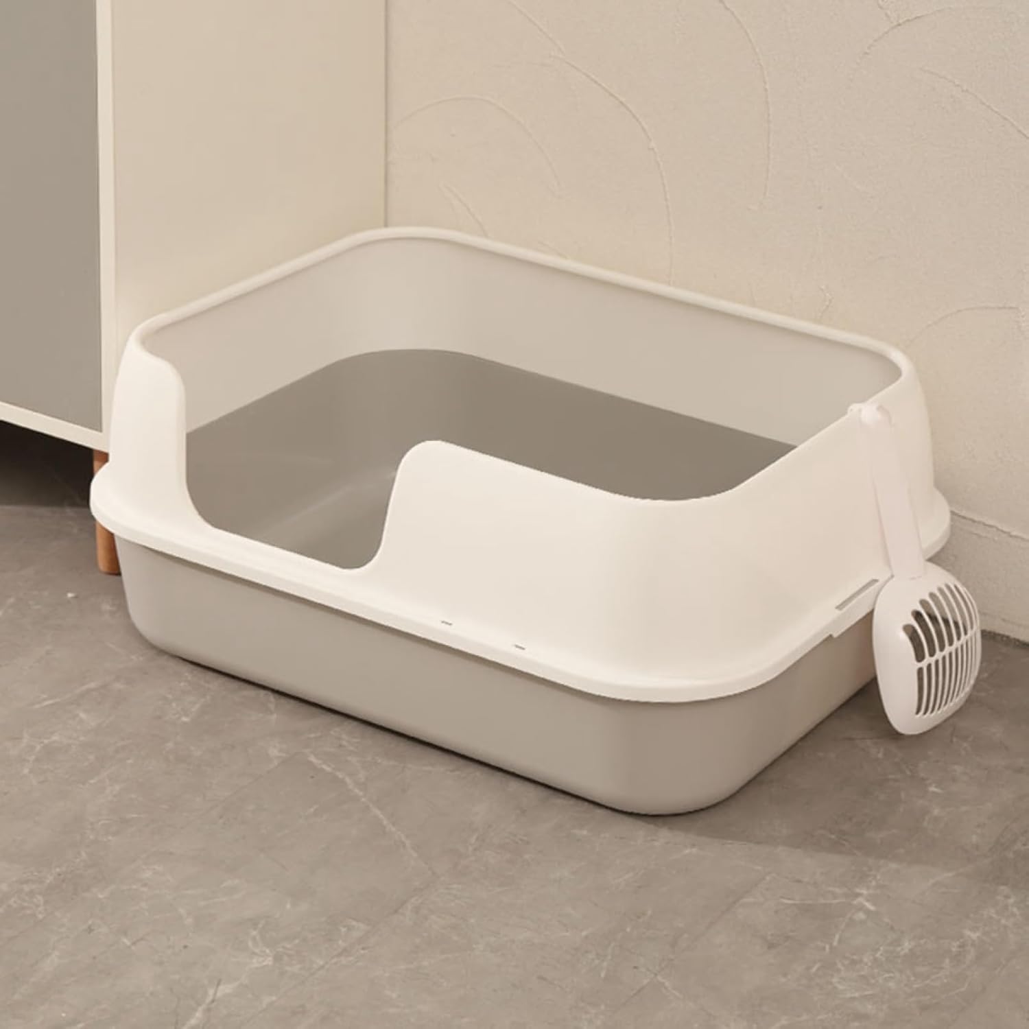 猫トイレ 猫用トイレ本体 ワイドサイズ 深型 大型猫 スコップ付き キャットトイレ 掃除簡単 砂飛び散り防止 オープンタイプ 深め 清潔 広々サイズ 耐久性 猫?所 抗菌防臭 猫用品 大容量 ホワイト