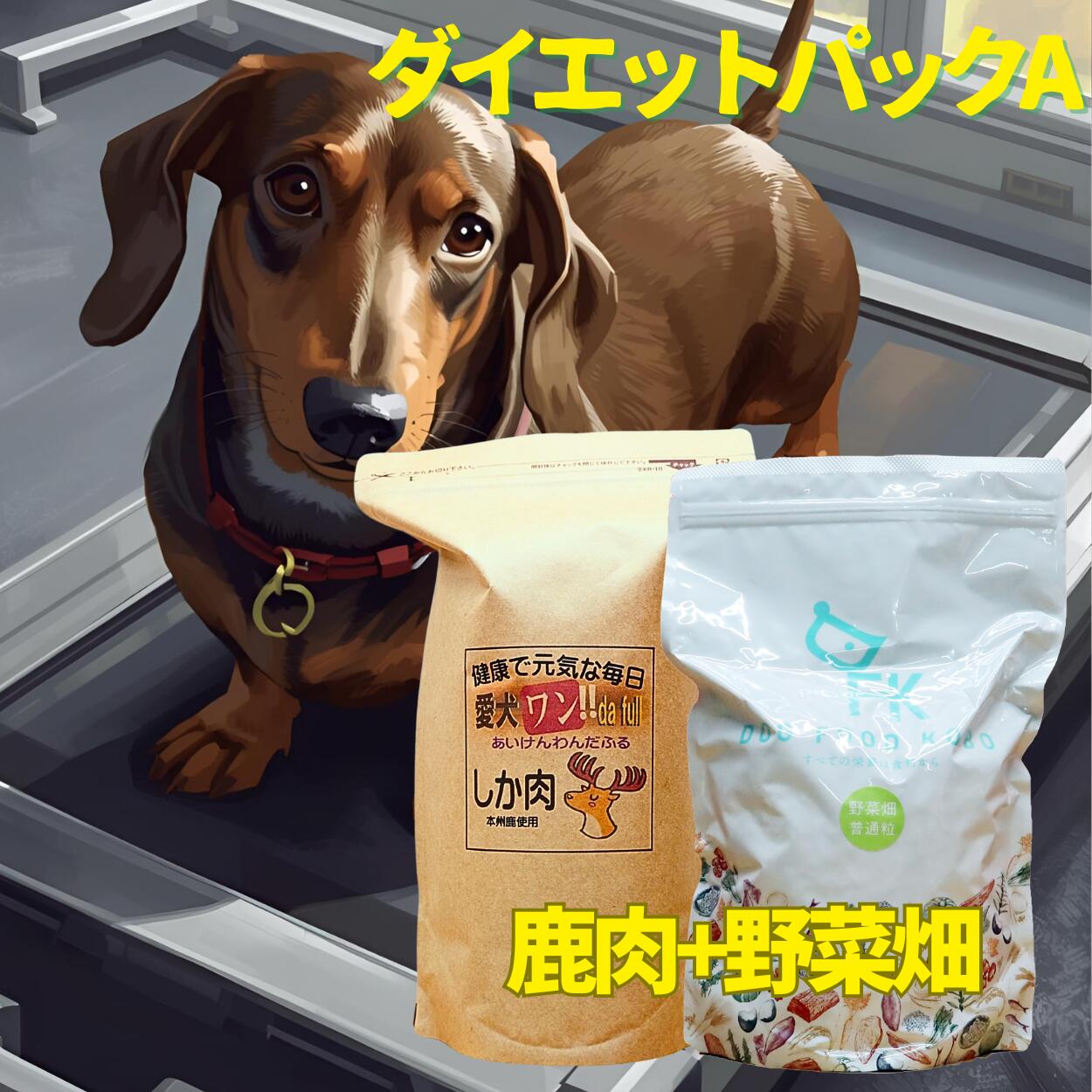 送料無料 国産 無添加 自然食 健康 ドッグフード ダイエットパック A(普通粒 or 小粒)ドッグフード工房 野菜畑 700g 【 愛犬ワンダフル 】 ジビエ 鹿肉 800g セット 全犬種対応 ドライフード 低カロリー 低脂肪 食いつき 涙やけ ドックフード 高齢犬 こだわり食材