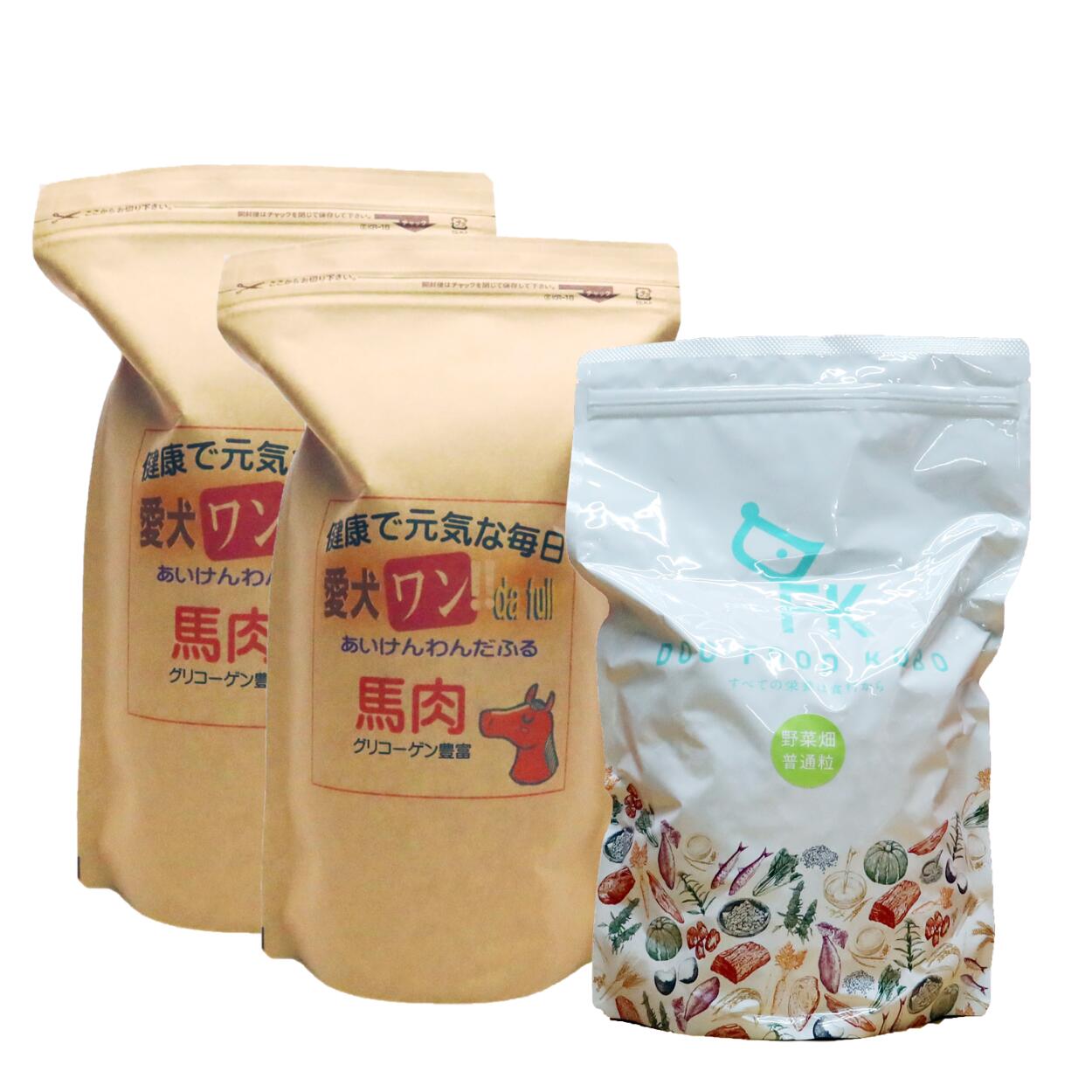 送料無料 国産 無添加 自然食 健康 こだわり食材 ドッグフード ダイエットパック B-2【 愛犬ワンダフル 】 馬肉 800g 2個 (普通粒 小粒) ドッグフード工房 野菜畑 700g 1個 セット 全犬種対応 低カロリー 低脂肪 食いつき 避妊・去勢 涙やけ ドックフード 高齢犬