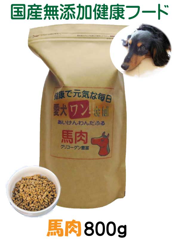 【愛犬ワンダフル】 馬肉タイプ 小粒 普通粒 800g 1個 全犬種対応 国産 無添加 全犬種対応 ドッグフード 消化酵素 お腹にやさしい ドライフード 低カロリー 高たんぱく 低脂肪 食いつき ダイエット シニア犬 避妊・去勢 涙やけ 体臭