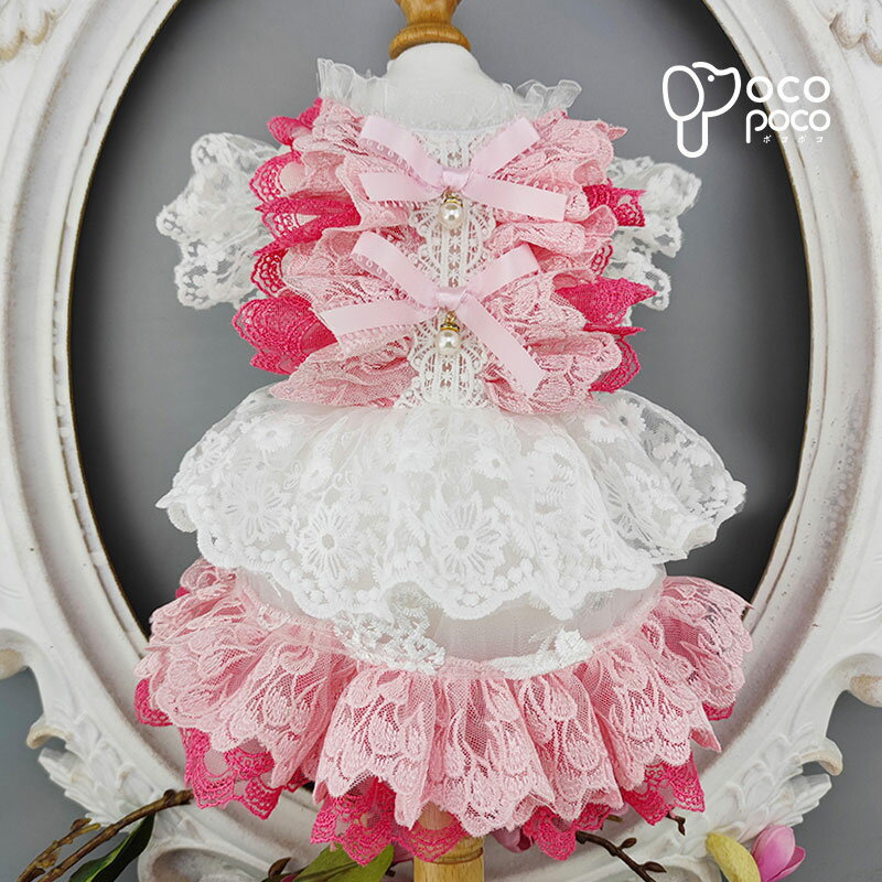 【ブラックフライデー開催レビュー8300超 4.74】犬 ドレス ワンピース いぬ 犬服 おしゃれ かわいい おしゃれ着 おしゃれ 写真撮影 iDog ウェディング風レースワンピ レース ピンク ホワイト kimono5298 女の子
