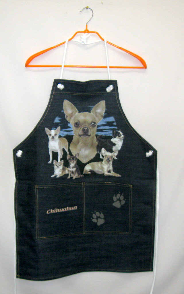 チワワ柄(集合) デニムエプロン 首かけタイプ ポケット付き かわいい レディース 男性用 女性用 男女兼用 おしゃれ DIY 犬柄 いぬ 犬プリント 犬種別 雑貨 犬グッズ 犬プリント 動物 記念品 オフ会 オーナーグッズ