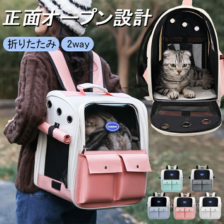 【正面オープン設計/折りたたみ/2way/選べる5色】ペットキャリーバッグ ペットキャリーリュック キャリーバッグ ペットキャリー バッグ リュック ペットバッグ ペットリュック ペット用リュック 犬 小型犬 猫 収納 大容量 メッシュ アウトドア 可愛い 小動物 防水 散歩 イヌ