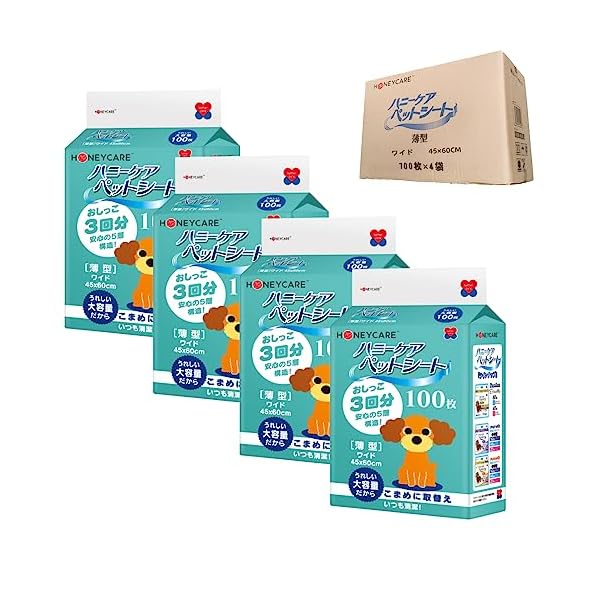 HONEYCARE ハニーケア ペットシーツ 薄型 犬 ワイド 45*60cm 400枚入り 100枚*4袋