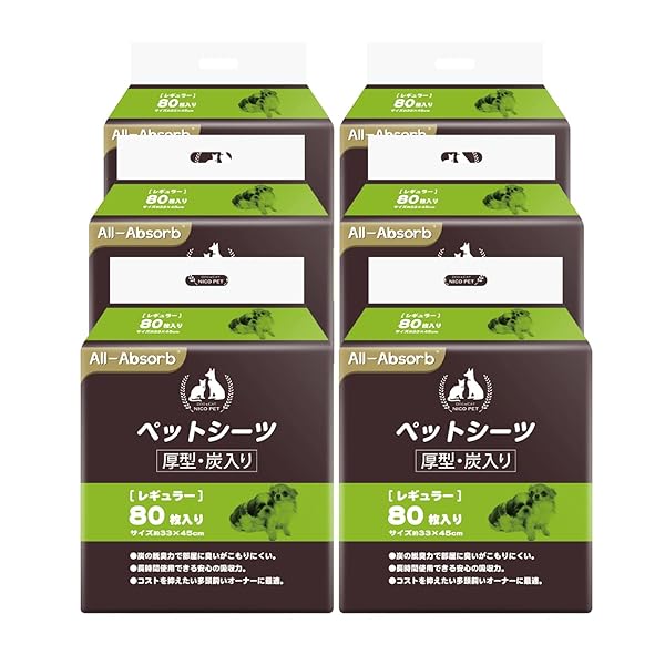 HONEYCARE ペットシーツ 厚型 炭入り消臭 カーボンシート レギュラー480枚 ワイド 240枚 スーパーワイド120枚 (レギュラー80枚*6セット(480枚))