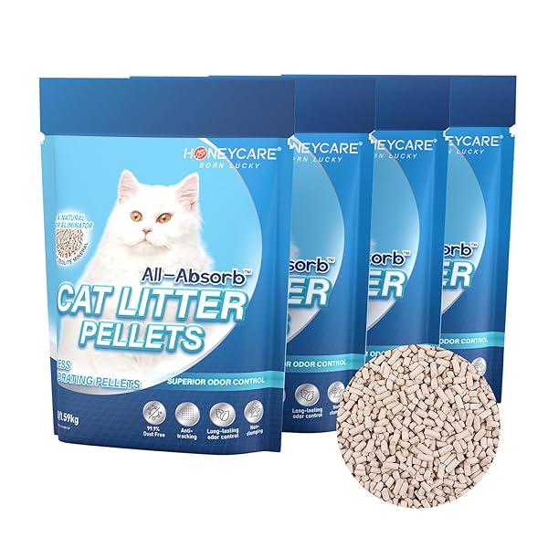 HONEYCARE 各社共通 システムトイレ用 消臭猫砂 ゼオライト 約14L(1.59kg*4袋セット) 猫トイレ用品 ネコ砂 消臭 抗菌 長持 交換簡単 臭みから解放 シーツと組み合わせ利用可能