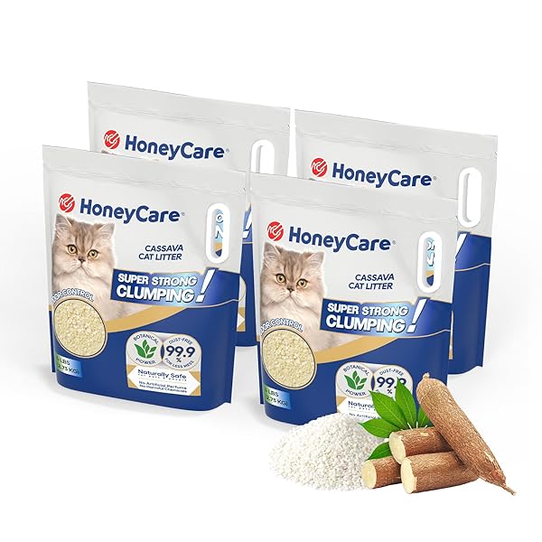 HONEYCARE キャッサバ製猫砂 ハニーケア 猫砂 しっかり固まる 猫トイレ砂 小粒 天然素材 食べてしまっても大丈夫 約16.8L/2.73kg*4袋 しっかり消臭 飛び散らない 臭みから解放 無香料