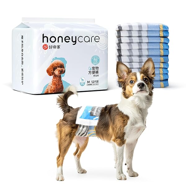 HONEYCARE 犬 おむつ 男の子用おむつ 高吸収性 お漏らし対策 ズレにくい マナーおむつ おしっこお知らせライン付き 小型 中型犬用 50枚入り (M:胴回り:30-38cm)