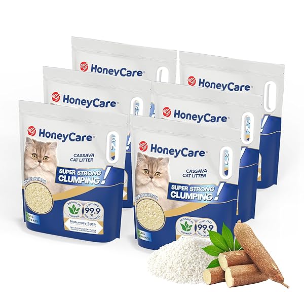 HONEYCARE キャッサバ製猫砂 ハニーケア 猫砂 しっかり固まる 猫トイレ砂 小粒 天然素材 食べてしまっても大丈夫 約25.2L/2.73kg*6袋 しっかり消臭 飛び散らない 臭みから解放 無香料