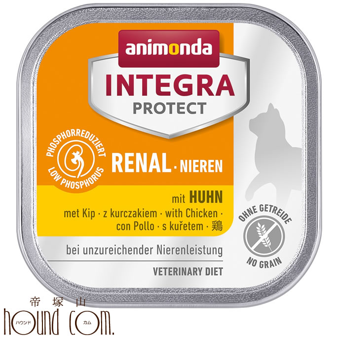 全年齢対応・腎臓ケア対応犬用療法食アニモンダ インテグラの食事療法食は、"美味しい"食事療法食です。いくらフードの成分が良くても、食べなければ意味がありません。アニモンダの食事療法食は、まずおいしいフードであることを一番に考え、それでいて食事療法食として成り立つように考えられています。慢性腎不全(慢性腎臓病=CKD)のイヌのために特別に開発された犬用療法食。タンパク質とリンの含有量を減らすことにより腎機能が支えられます。このフードはグレインフリーです。・グレインフリー・低リン、低タンパク・大豆、砂糖不使用・香料、着色料、保存料不使用※最短賞味期限表記についてタイトルに表示の賞味期限は、弊社在庫の最短期日になりますがご注文のタイミングにより表記より長い場合も御座います。◆輸入元入荷状況により表記より短くなる場合も御座います。◆賞味期限のご指定(期限の長い商品等)はお受け出来ませんので、予めご了承ください。この商品は「ヤマト運輸」「ゆうパック」のいずれかにて配送となります。※配送業者を指定のご希望は、ご購入金額に関わらず指定料200円(税込)にてお受けいたします。ご購入時の備考欄に上記いずれかのご希望の配送業者名をご記入ください。全年齢対応・腎臓ケア対応犬用療法食アニモンダ インテグラの食事療法食は、"美味しい"食事療法食です。いくらフードの成分が良くても、食べなければ意味がありません。アニモンダの食事療法食は、まずおいしいフードであることを一番に考え、それでいて食事療法食として成り立つように考えられています。慢性腎不全(慢性腎臓病=CKD)のイヌのために特別に開発された犬用療法食。タンパク質とリンの含有量を減らすことにより腎機能が支えられます。このフードはグレインフリーです。・グレインフリー・低リン、低タンパク・大豆、砂糖不使用・香料、着色料、保存料不使用機能アニモンダ インテグラプロテクトは、特定の疾病等に対応するために栄養バランスを考慮した、毎日の主要な食事として与えられるフードです。原材料:肉類(鶏、豚、牛)、油脂類、野菜(ポテト)、野菜副産物、ミネラル類、ビタミンD3※タンパク源:鶏、豚、牛分析値:タンパク質6.6%、脂肪16%、粗繊維0.5%、粗灰分1.3%、水分73%、カルシウム0.21%、リン0.15%、ナトリウム0.17%、カリウム0.13%、リノール酸2%栄養添加物(1kgあたり)※商品説明ラベルのサイズ上、下記記載より省略されて原材料に記載されている事があります。ビタミンD3 275IU、ヨウ化カルシウム 0.6mg、銅アミノ酸水和物 1.7mg、硫酸マンガン-水和物 2.7mg、硫酸亜鉛-水和物 39mgペットたちが生きていく上で必要な栄養素を補う目的に限り、添加物(天然由来)を使用しています。また、ドライフードには酸化防止のためビタミンが添加されています。これらはEUで認められた栄養添加物となっており安全です。カロリー(100gあたり):157kcal内容量:150g推奨給餌量体重:3kg 1日あたり:150g 体重:5kg 1日あたり:230g体重:7kg 1日あたり:300g体重:12kg 1日あたり:450g体重:18kg 1日あたり:600g推奨使用期間最初は6ヵ月以内。使用前および期間を延長する場合には使用前に獣医師に相談することをおすすめします。症状が改善した場合は無期限に使用できます。原産国:ドイツ推奨使用期間についてQ)インテグラプロテクトシリーズの商品には【推奨使用期間】が最初は3ヶ月とか6ヶ月以内などの記載がありますが、それ以上長期的に利用することはできないのでしょうか?A) インテグラプロテクトシリーズの商品のうち、「胃腸ケア」シリーズ以外の商品は、症状のあるイヌまたはネコが生涯そのフードのみを食べて長期的に生活できるよう作られていますので、原則的には無期限に使用できます。【推奨使用期間】に記載されている3ヶ月や6ヶ月の意味は、その期間中に獣医師の検査を受け、「そのフードが本当に体調にあっているかどうかを確認してください。」ということです。検査の結果、体調にあっていれば無期限にご利用いただけます。これに対して「胃腸ケア」シリーズの商品は、症状のある間だけ使用することを想定して作られていますので、無期限に使用することはできません。症状が回復したら通常のフードへ切り替えることが必要です。缶詰、トレイ等のフードについて缶詰、トレイ等のフード類は、空気圧や流通過程の衝撃等の原因により、へこみなどが生じる場合がございますが、内容に問題はございません。あらかじめご了承ください。※最短賞味期限表記についてタイトルに表示の賞味期限は、弊社在庫の最短期日になりますがご注文のタイミングにより表記より長い場合も御座います。◆輸入元入荷状況により表記より短くなる場合も御座います。◆賞味期限のご指定(期限の長い商品等)はお受け出来ませんので、予めご了承ください。この商品は「ヤマト運輸」「ゆうパック」のいずれかにて配送となります。※配送業者を指定のご希望は、ご購入金額に関わらず指定