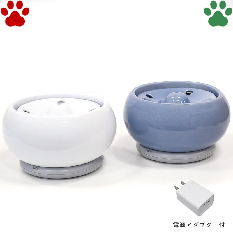 【40】[セット] GEX ピュアクリスタル セラモ 1.8L ホワイト / ブルー + 純正 USBアダプター G-1A ホワイト犬猫兼用 自動給水器 獣医師推奨 フィルター式 循環式 給水器 陶器 セラミック 軟水 大容量 シンプル おしゃれ 白 青 ceramo ジェックス