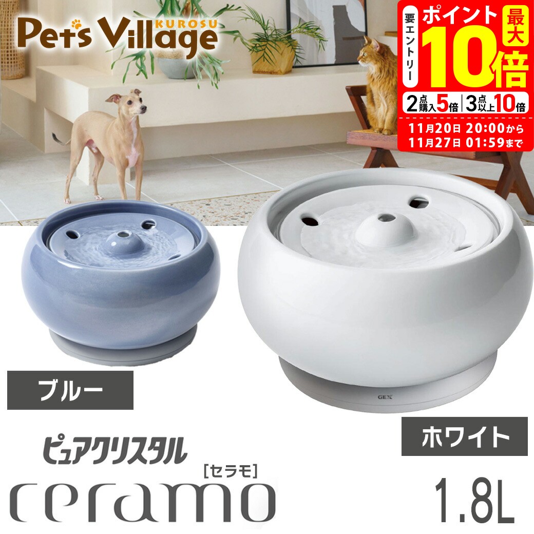 ポイント最大10倍!11/20 20:00〜11/27 01:59まで|GEX ピュアクリスタル セラモ ホワイト/ブルー 1.8L 犬猫用【ジェックス】 [給水器] ceramo 陶器製
