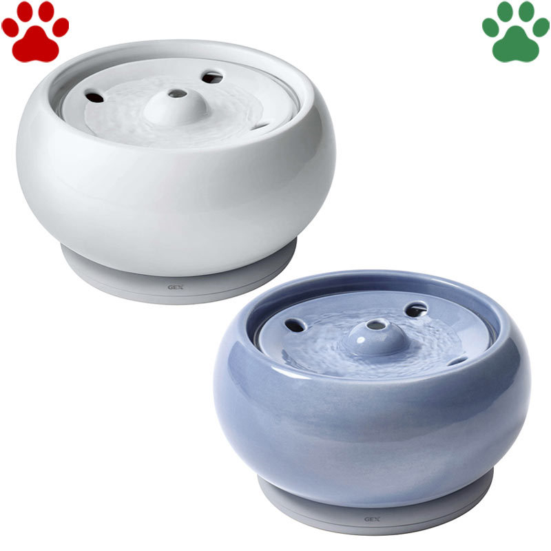 GEX ピュアクリスタル セラモ 1.8L ホワイト / ブルー 犬猫兼用自動給水器 獣医師推奨 USB電源 フィルター式 循環式 給水器 陶器 セラミック 全円タイプ 軟水 大容量 シンプル おしゃれ 犬 猫 白 青 CE18WH CE19BL ceramo ジェックス