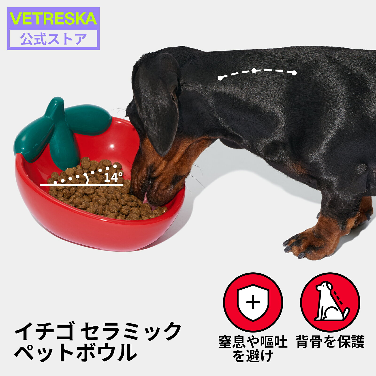【ブラックフライデー特典】VETRESKA 苺 セラミック ペットボウル 陶器 猫用 犬用 フードボウル 250ml 食器 ウォーターボウル 餌皿 餌入れ 水入れ 滑り止め 安定感 子犬 成猫 子猫 小型犬 ペット用ディッシュ 姿勢サポート斜め 嘔吐防止 おしゃれ かわいい フルーツ型