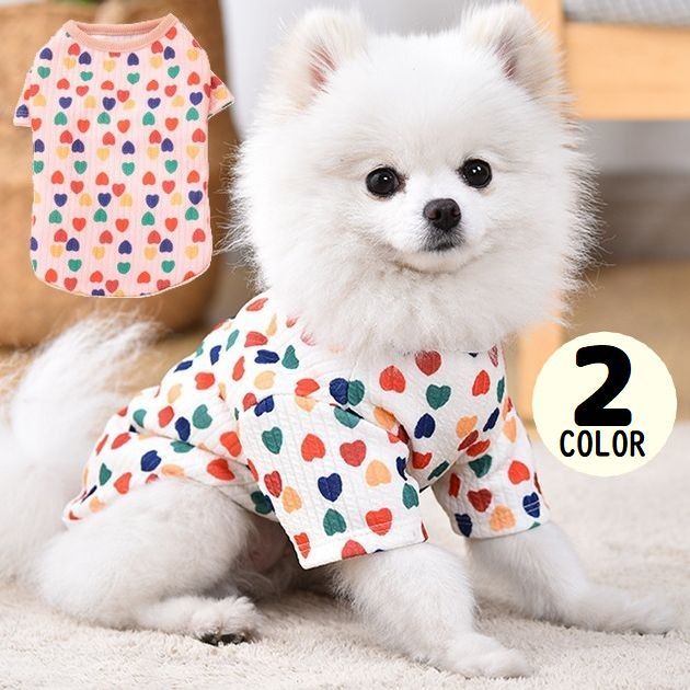 送料無料 ドッグウェア 犬服 カットソー Tシャツ ペット用 小型犬 猫 半袖 薄手 洋服 プルオーバー カラフル ハート柄 可愛い 春夏