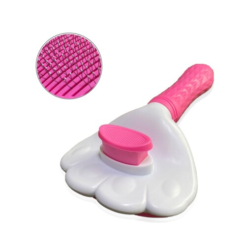STAY Four ペット用ブラシ 犬猫兼用 スリッカーブラシ 抜け毛取り ボタンを押し簡単抜け毛除去 ワンプッシュ式 痛くない マッサージ 丸洗い可能 短毛 中毛 長毛 (ピンク)