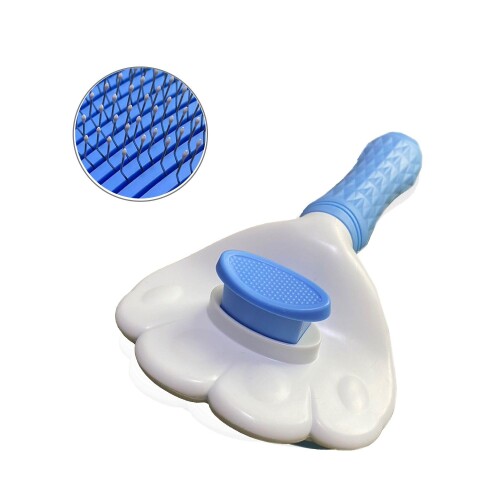 STAY Four ペット用ブラシ 犬猫兼用 スリッカーブラシ 抜け毛取り ボタンを押し簡単抜け毛除去 ワンプッシュ式 痛くない マッサージ 丸洗い可能 短毛 中毛 長毛 (ブルー)