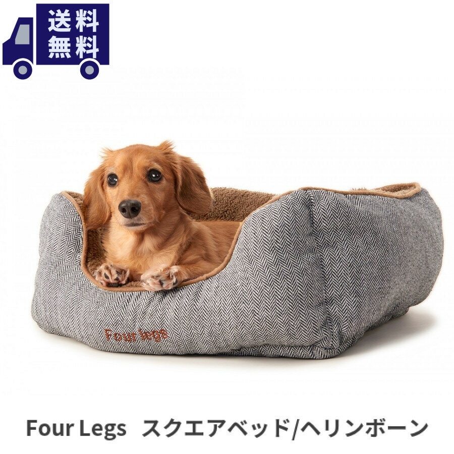 【送料無料】 ペットベッド Four Legs スクエアベッド Sサイズ ヘリンボーン インテリア 通年 ベッド 犬用 超小型犬 小型犬 猫用 スーパーセール ポイント