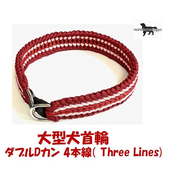 PARACORD CHOKE パラシュートコード 大型犬首輪 ダブルDカン 4本線( Four Lines)カラー:D プラム・サクラ・エンジ・エンジ 送料無料