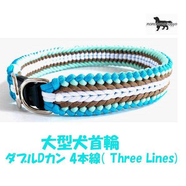 PARACORD CHOKE パラシュートコード 大型犬首輪 ダブルDカン 4本線( Four Lines)カラー:C アイスホワイト・ブラウン・ミント・ターコイズ 送料無料