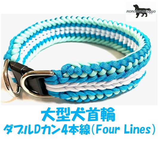 PARACORD CHOKE パラシュートコード 大型犬首輪 ダブルDカン 4本線( Four Lines)カラー:E アイスホワイト・ターコイズ・ミント・ターコイズ 送料無料