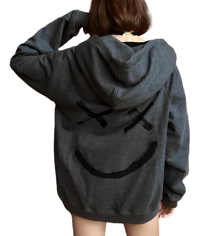 【送料無料】[Four leaf] 【薄手で裏起毛】 パーカー メンズ プルオーバー バイカラー 裏起毛 秋 冬 春 秋冬 スマイル 長袖 フード付き トレーナー プリント カジュアル アシンメトリー スウェット 薄手 軽量 色:ディープグレー、サイズ:M