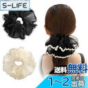 【送料無料】FASELE ヘアゴム 髪ゴム シュシュ メッシュ パール付き ヘアアクセサリー 森ガール 蝶結び エレガント 優雅的 上品さ 髪飾り 女性 高弾性 おしゃれ 日常 通勤 プレゼント 贈り物 (2点セット) 色:ブラック