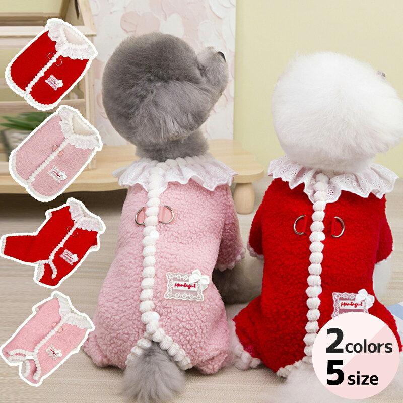犬服 猫服 いぬ服 ねこ服 冬 つなぎ ベスト もこもこ ボア レース襟付き 四つ足 洋服 可愛い 暖かい フリル 防寒 小型犬 中型犬 ペットウェア ドッグウェア 可愛い 刺繍 ドレス ドレッシー フリル トイプードル チワワ マルチーズ ヨーキー ピンク レッド 女の子 男の子兼用