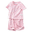 [HahaNice]子供服女の子パジャマキッズ半袖ルームウェア部屋着上下セットアップ綿夏服寝間着半ズボン五分丈ガールズ女児ジュニアクールネック寝巻き可愛いピンク100