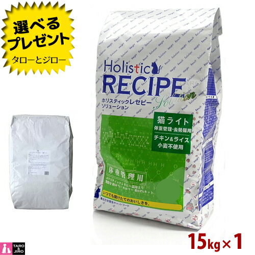 【選べるおまけ付】ホリスティックレセピー【猫 ライト 体重管理・去勢猫用 チキン&ライス】15kg ブリーダーパック 大袋 小麦不使用 毛玉 ヘアボール配慮 キャットフード