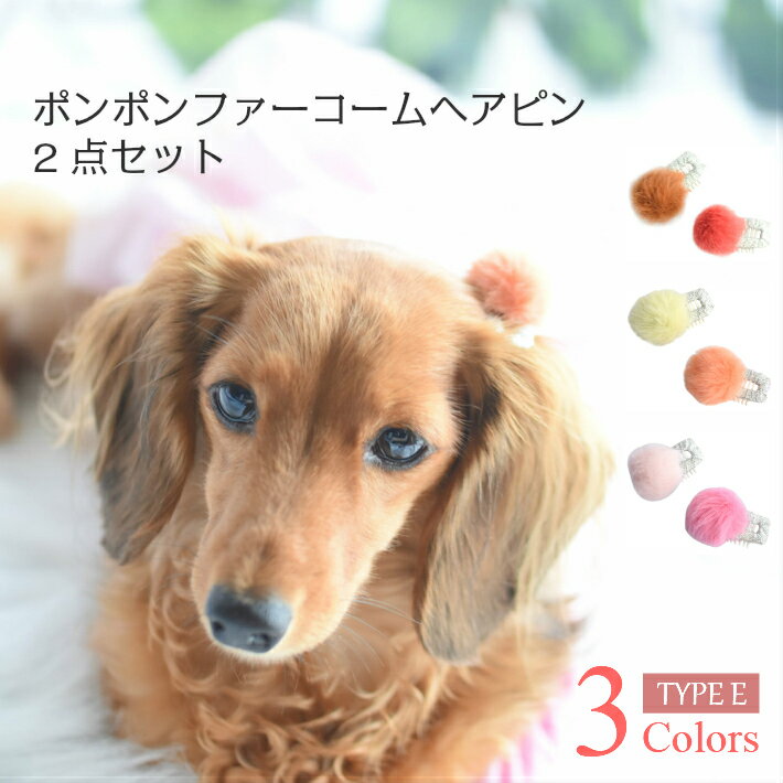 【犬 ヘアアクセサリー】 ポンポン ファー コーム型 パッチン留め ヘアピン 2点セット E 髪飾り