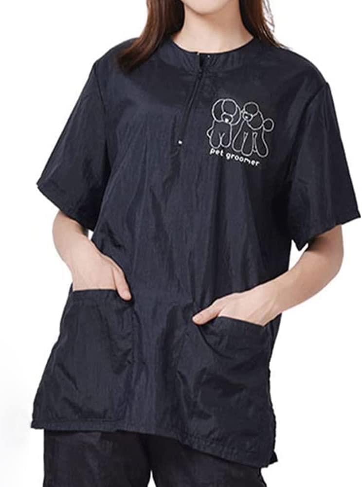 Umora 半袖 ペット 美容師 スモック 作業服 エプロン グルーミング 作業着 帯電防止 防水 ペット 犬 猫 ペットショップ用 ペット ヘアカット 服 ポケット2つ付き(シュナウザー L)