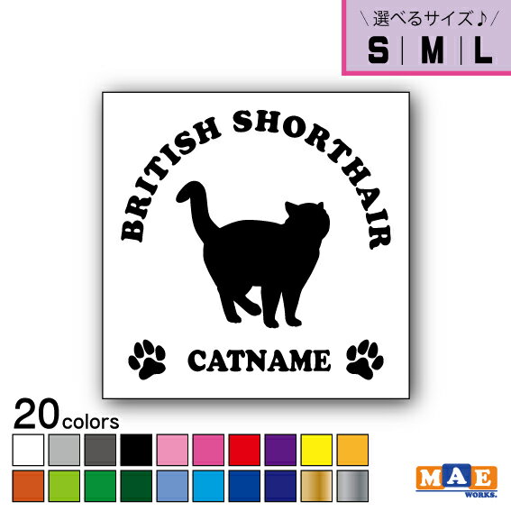 【選べる3サイズ!】全20色 キャットシルエット カッティングステッカー S M L 名入れ無料 ブリティッシュショートヘア 愛猫 猫 ねこ ネーム ペット にゃんこ かわいい 名前 マエワークス CS-32