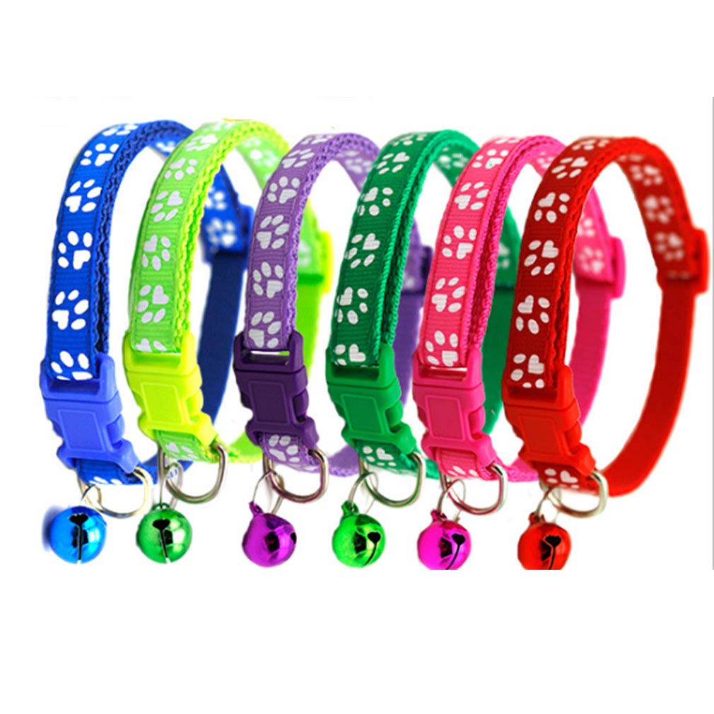 【送料無料】IHOLLY 猫 首輪 猫の首輪 猫用首輪 バックル付 鈴付 ナイロン素材 サイズ調節可 ネコ飾り 犬飾り 可愛い 小型犬用 柔らかい オシャレ ソフト 可愛い肉球柄 6個入れ 色:Bセット