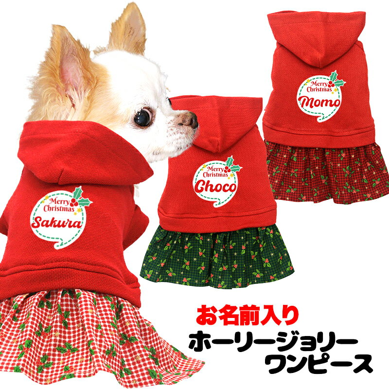 \わんわんP11倍★11/30 23:59まで/【犬 服 犬の服 名入れ 春秋服 冬服用】愛犬のお名前入り ホーリージョリーワンピース【クリスマス 柊 ヒイラギドッグ ペット ウェア ダックス トイプードル チワワ タムベディ おしゃれ マルチーズ】(L/)